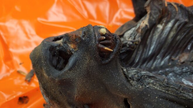 The traveler, arriving from the Democratic Republic of Congo, was stopped during a routine inspection at O’Hare. Upon examination of their luggage, officers discovered over 11 pounds of pest-infested beans, 17 pounds of unidentifiable plant material, and approximately 4 pounds of dried monkey meat, which was later classified as non-human primate meat. In addition to the monkey meat, authorities also seized what they described as mummified small primates.